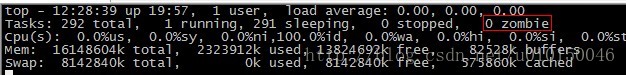 首先,可以使用top命令来查看服务器当前是否有僵尸进程,下图中可以看到僵尸进程的提示,如果数字大于0,那么意味着服务器当前存在僵尸进程: