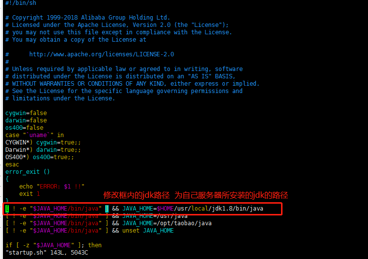 5、编辑 vim startup.sh脚本,修改