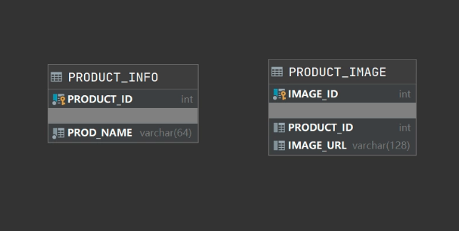 我们先创建一个简单商品表和对应的商品图片关系表,它们之间是一对多的关系: