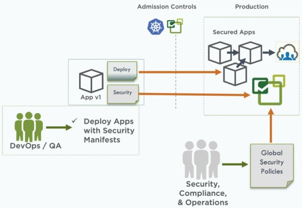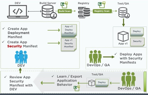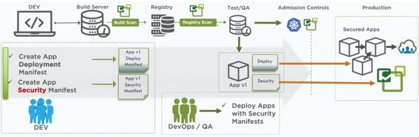 通过为应用程序创建部署与安全清单,开发人员能够在开发的初期尽早的利用CRD来保障安全性。在完成镜像的构建、自动化漏洞扫描、以及DevOps的审查之后,DevOps人员可以通过测试这两份清单,来为开发人员提供有效的安全性反馈。
