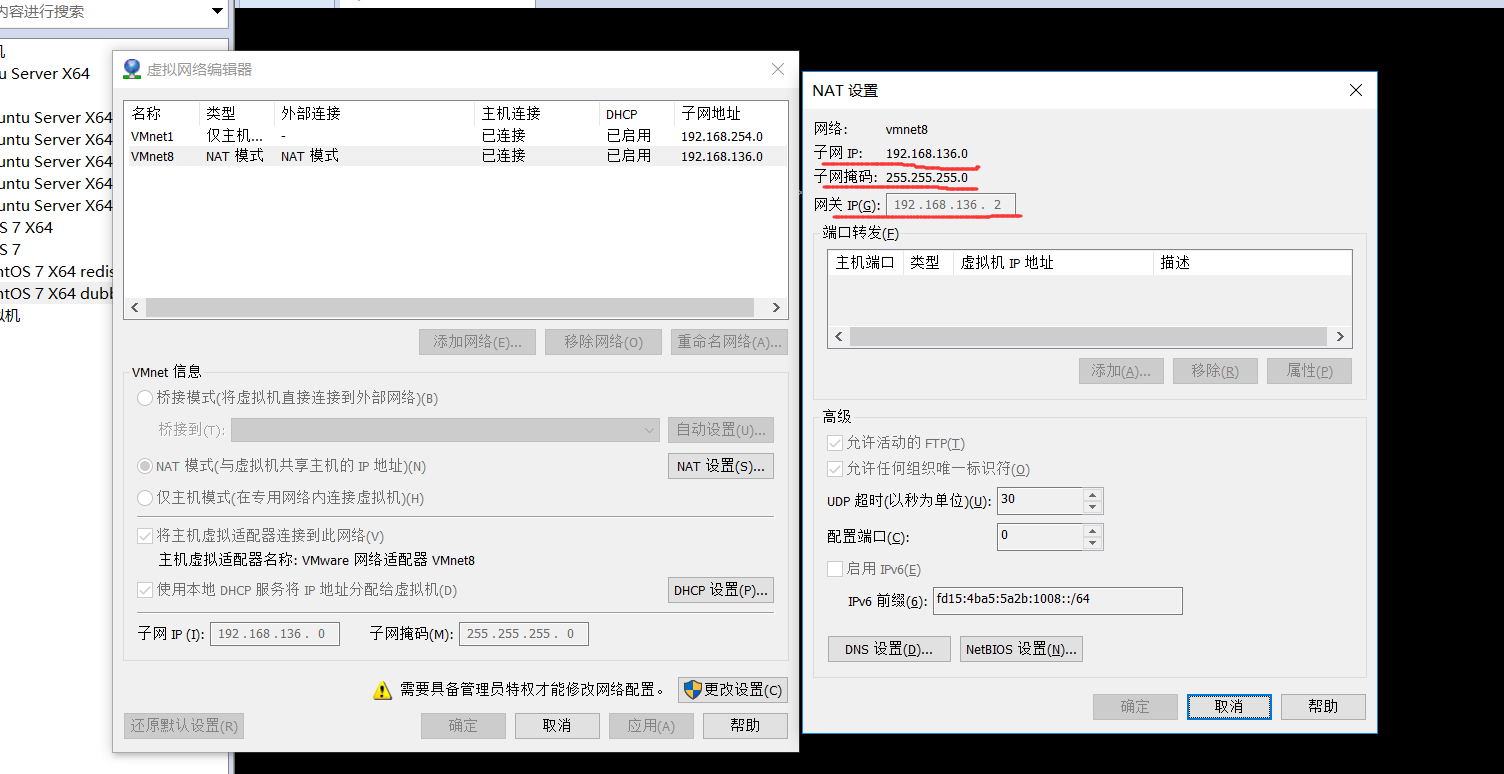 6、将虚拟机网络配置的网关和网络子掩码配置进去