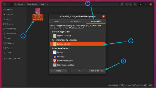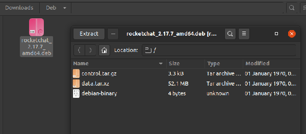我下载了 .deb 文件来安装Rocket Chat Messenger,然后双击该文件安装时,文件用存档管理器打开。这不是我所期望的。