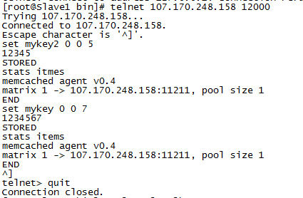 - 分别在11211、11212、11213端口启动3个Memcached进程,在12000端口开启magent代理程序;