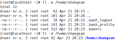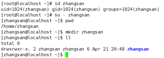 到现在为止,用户 zhangsan 的家目录和其中的所有文件都是root用户的