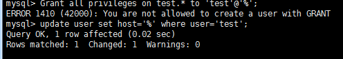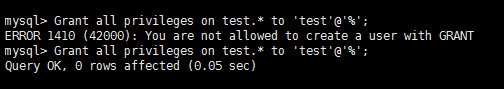 1.装了mysql8.0.13,试着分配几个账号和权限,结果报错: