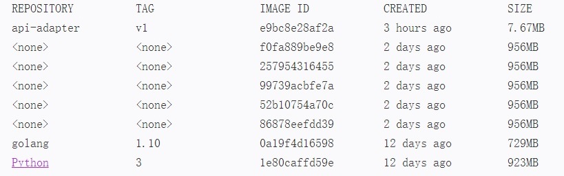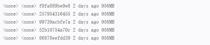 笔者开发机上有很多 Docker 镜像,现在需要删除名为 none 的那些: