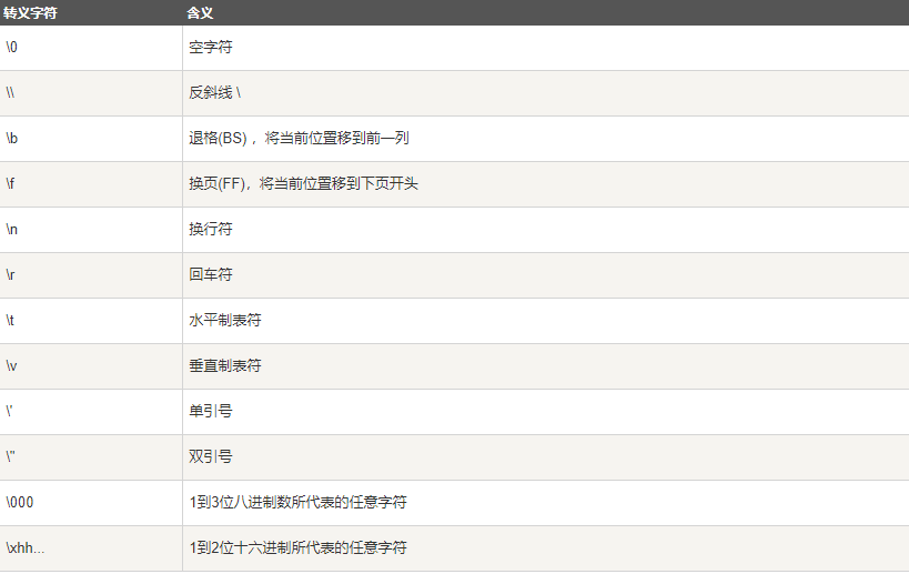 字符串型字面量由被包在双引号中的一串字符组成,形式如下: