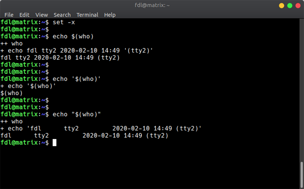 shell 的行为可以测试,使用set -x命令,会开启 shell 的命令回显,你可以通过回显观察 shell 到底在执行什么命令: