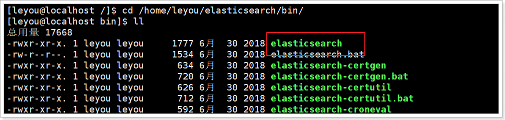 leyou 要own(拥有) elasticsearch 这个文件夹权限 -R 是递归的赋予权限