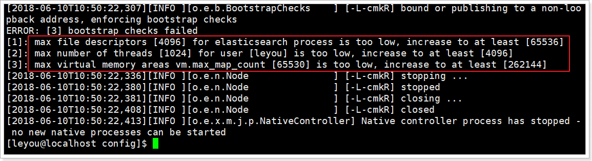 我们使用的是CentOS6,其linux内核版本为2.6。而Elasticsearch的插件要求至少3.5以上版本。不过没关系,我们禁用这个插件即可。