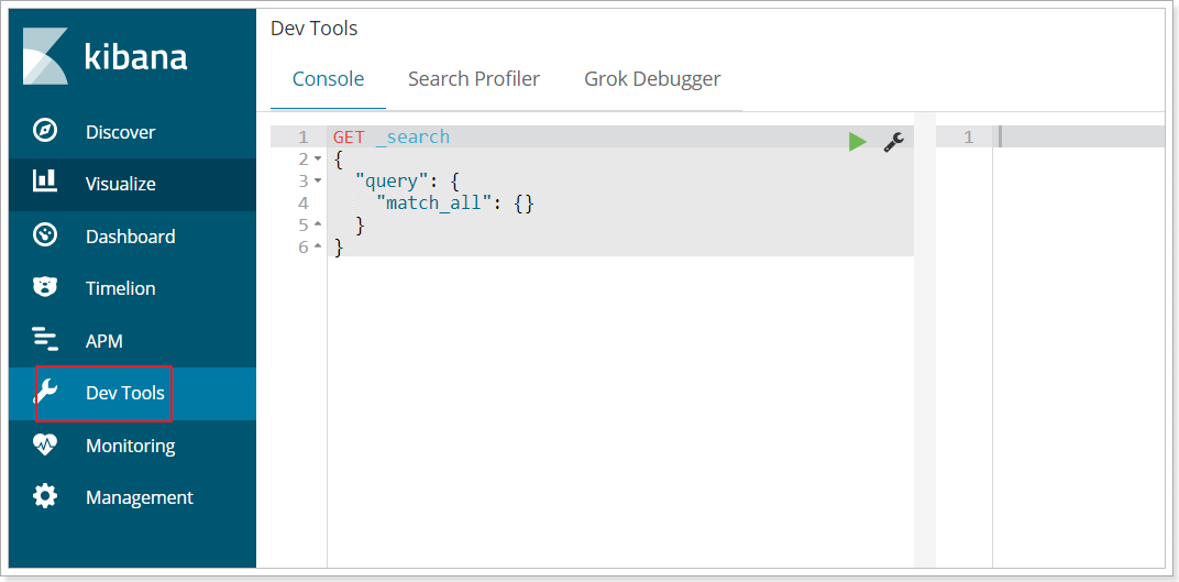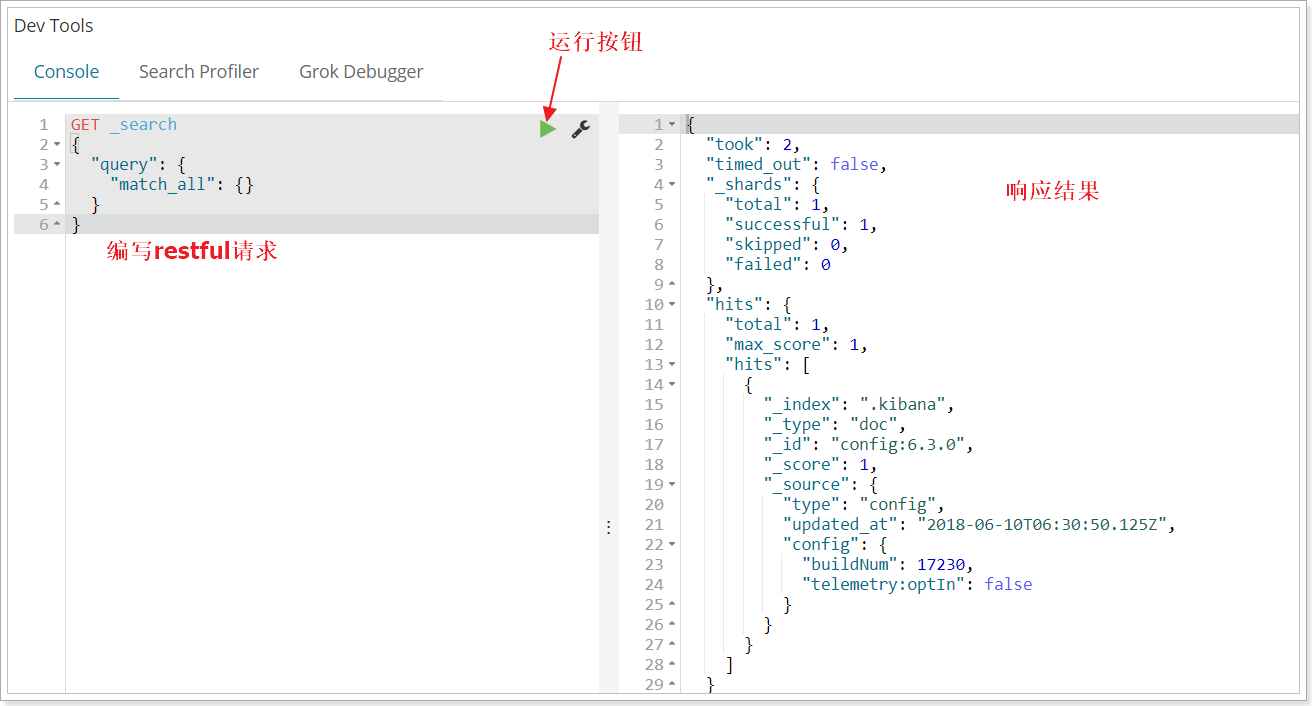 在页面右侧,我们就可以输入请求,访问Elasticsearch了。