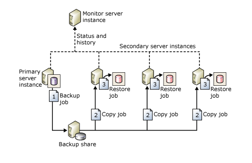 日志传输过程 * 在主服务器实例中备份事务日志。 * 将事务日志文件复制到辅助服务器实例。 * 在辅助服务器实例中还原日志备份。