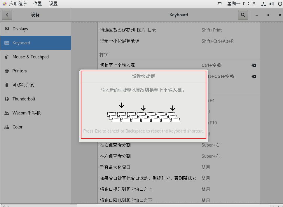 4、选择 Keyboard,单击右边任意一项,并在键盘上按下要设置的快捷键,即可更改其快捷键,(注意有些是无法更改的!)