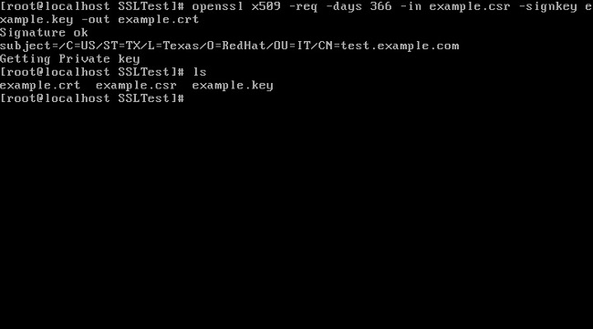 openssl x509 -req -days 366 -in example.csr -signkey example.key -out example.crt
