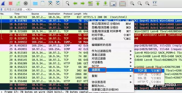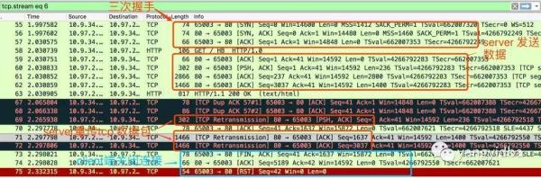 (2)由于包比较多,我们可以使用wireshark的追踪流功能获取重传相关的tcp流。
