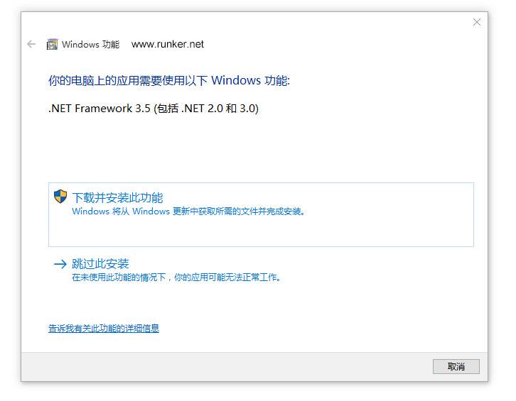 Windows 10 系统 net framework 3.5 安装不了的解决方法