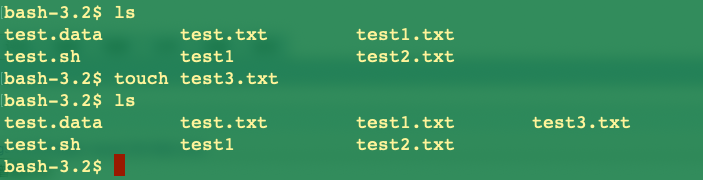 touch使用一个并不存在的文件名作为参数,创建空白文件,格式为: