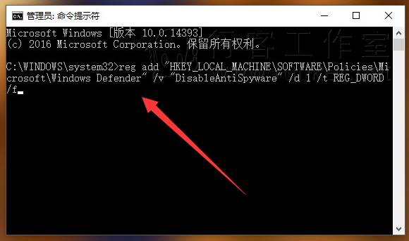 reg add “HKEY_LOCAL_MACHINE\SOFTWARE\Policies\Microsoft\Windows Defender” /v “DisableAntiSpyware” /d 1 /t REG_DWORD /f