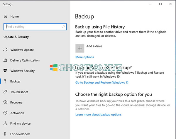 --windows 10设置将打开。 现在,单击“转到备份和还原(Windows 7)”。