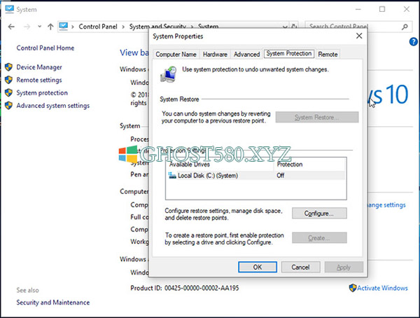 更改系统还原设置