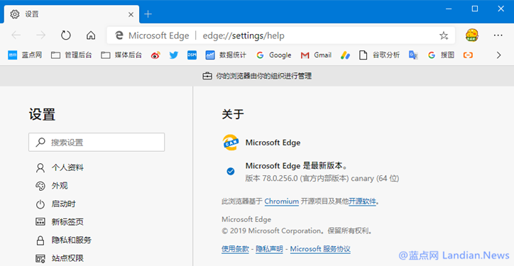注意:此功能使用微软提供的企业客户策略进行管理,因此修改后 Microsoft Edge 会显示由您的组织进行管理。
