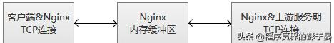 Nginx监控客户端连接和上游连接,一旦接收到数据,则Nginx会立刻读取并且推送到上游连接,不会做TCP连接内的数据检测。Nginx维护一份内存缓冲区,用于客户端和上游数据的写入。如果客户端或者服务端传输了量很大的数据,缓冲区会适当增加内存的大小。
