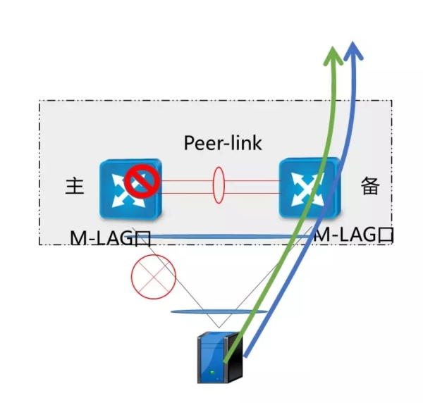 支持M-LAG成员口故障后,可开放peer-link,让流量可以绕行。