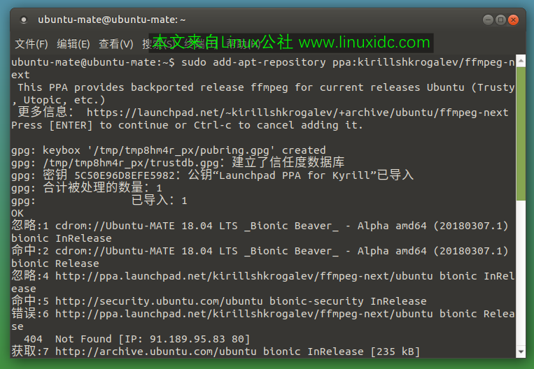 2.对于Ubuntu 14.04,您还需要运行命令到FFmpeg库的另一个PPA:
