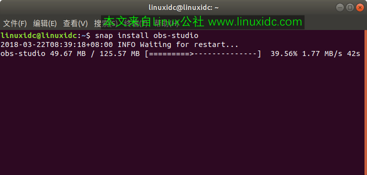 方法二:使用snap install obs-studio命令安装