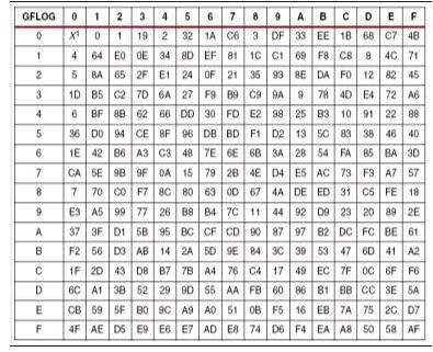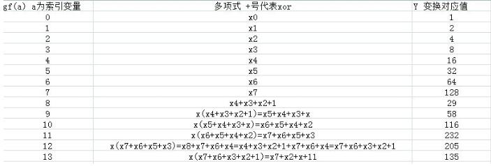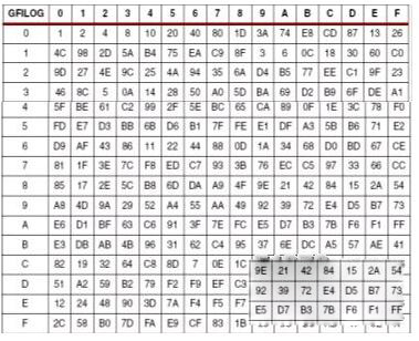 通过下表的方法生成正表GFILOG,注意:此表的本原多项式为0X11D。