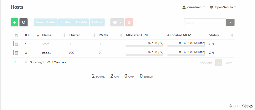 [root@opennebula ~]# scp /etc/hosts root@node1:/etc/hosts [root@opennebula ~]# scp /etc/hosts root@store:/etc/hosts