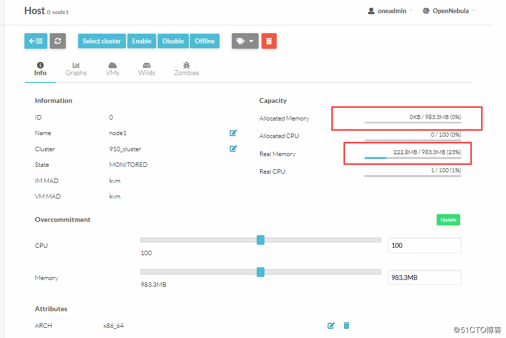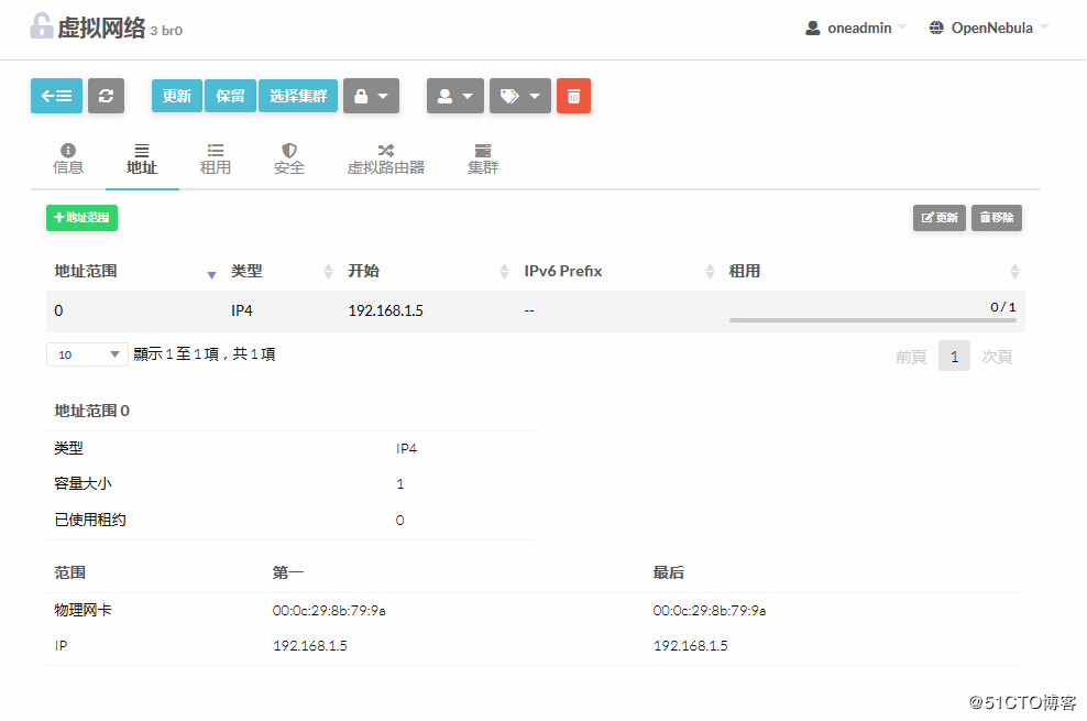 opennebula的硬件配置很灵活,硬件配置可以随意改,不受物理主机配置的限制。我这里没存用小点,做实验跑起来就行~