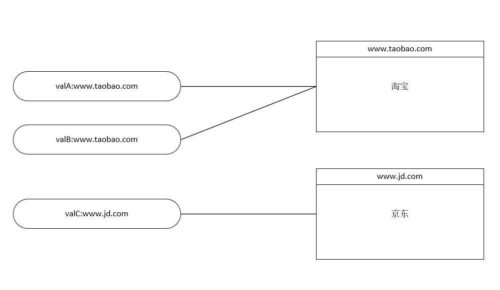 右侧有两个对象分别是淘宝和京东,左侧我们定义了三个变量来保存这个对象的地址(和上边的例子是一样的)