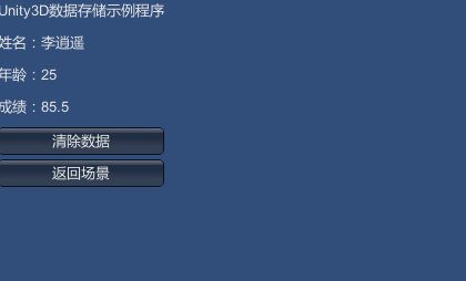 GUILayout.Label("Unity3D数据存储示例程序",GUILayout.Height(25));