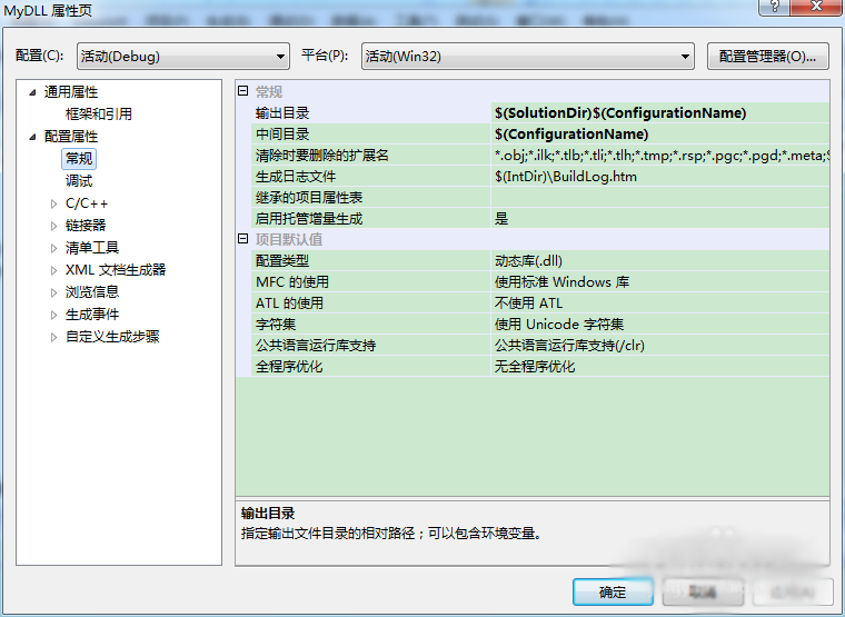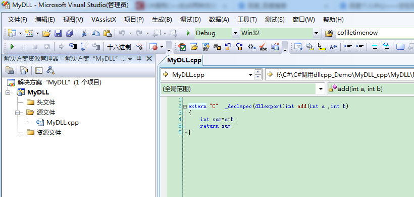 4、F5编译程序,在Debug文件夹中找到生成MyDLL.dll目标文件备用