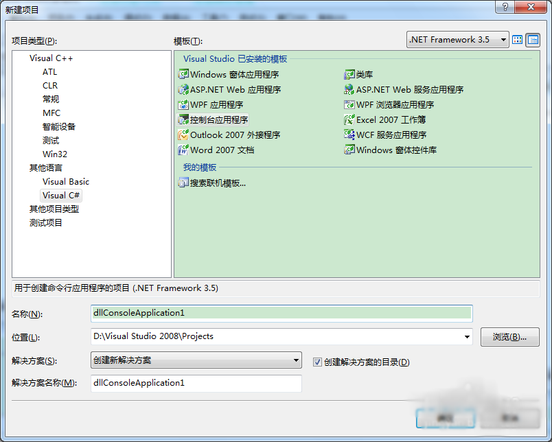 新建项目->Visual C#->控制台应用程序 dllConsoleApplication1