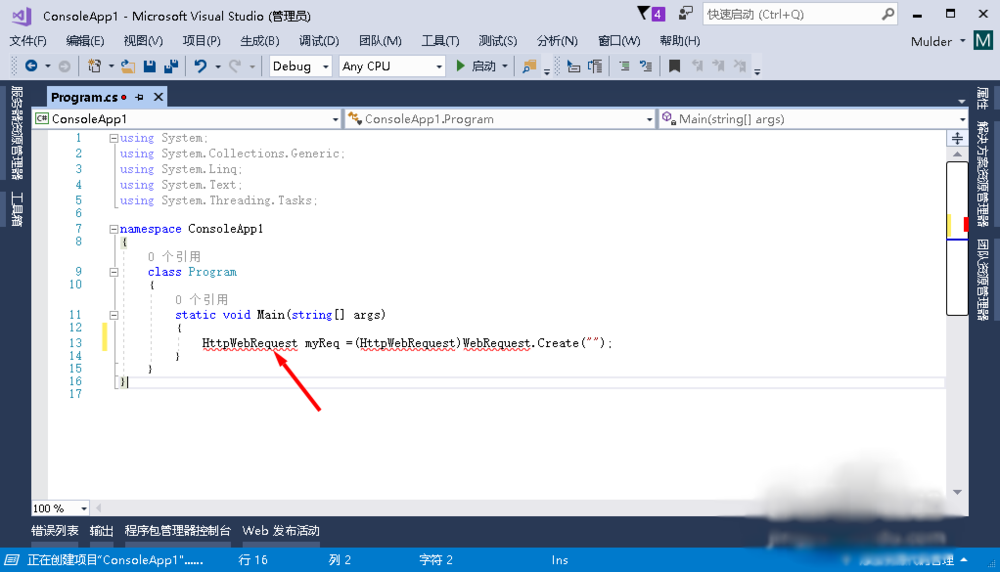 使用HttpWebRequest,使用之前要先创建
