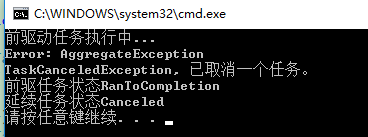 1.当指定的TaskContinuationOptions与前驱任务运行结果不一致时,强制调用延续任务Wait()会引发TaskCanceledException异常
