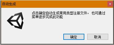第一次打开工程时会提示是否需要自动生成注册文件,新手可以选择直接生成,若选择了取消,也可以在编辑器菜单中手动注册。——这是一个非常重要的操作,后文也会提到。