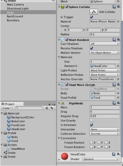 将该脚本挂载在头部对象上然后添加身体和食物预设体,再添加边界即可。