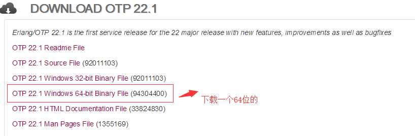 ps:这里下载的是otp的22.1的版本,我的理解是erlang等于c#语言,而otp等于netframework。