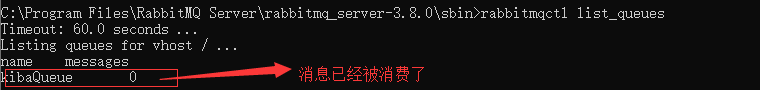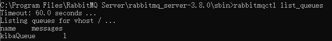 然后我们使用命令行rabbitmqctl list_queues,去rabbitmq的服务器查看当前消息队列,如下图: