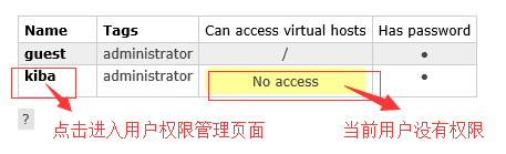 如上图所示,刚刚创建的用户还没有任何访问权限。