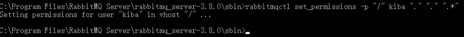 rabbitmqctl set_permissions -p "/" kiba "." "." ".*"