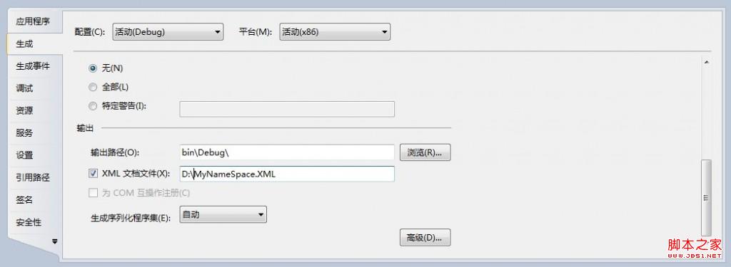 如果是在visual studio,需在项目属性的生成选项卡中选中生成xml文件,并指定路径和文件名。