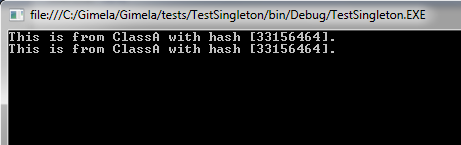 return string.format("this is from classa with hash [{0}].", this.gethashcode());