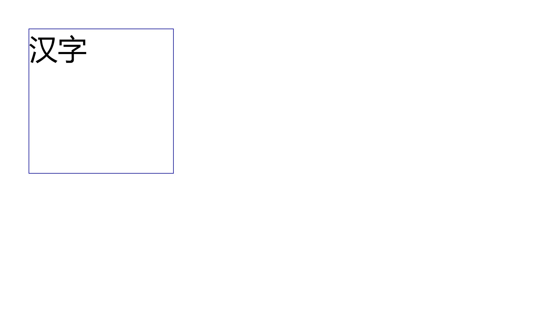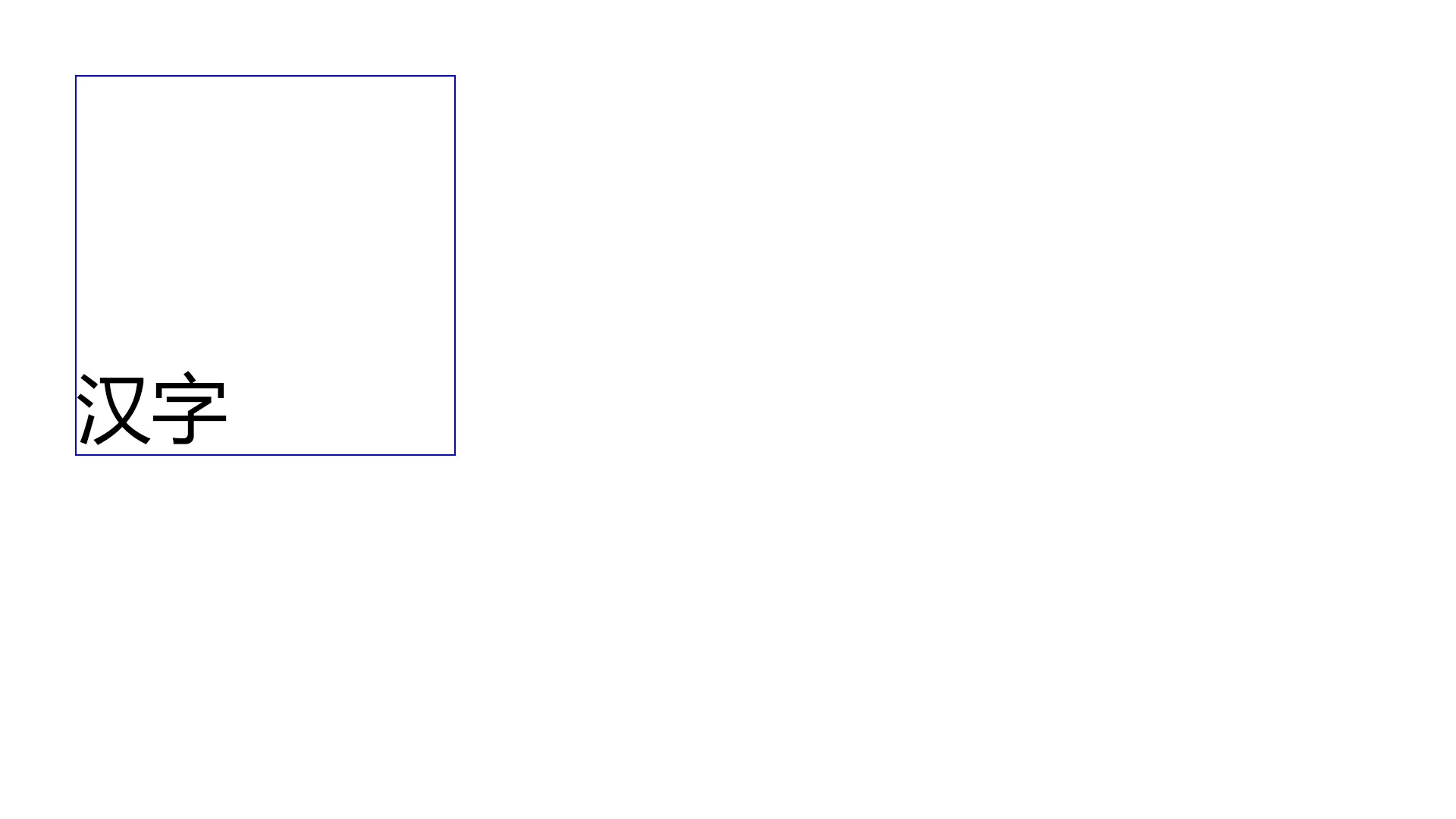 canvas.DrawString("汉字", 100, 100, 500, 500, HorizontalAlignment.Left, VerticalAlignment.Bottom);运行代码,可以看到输出如下