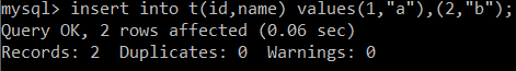 (5).使用批量交互插入语句以节省交互 insert into t(id,name) values(1,"a"); insert into t(id,name) values(2,"b"); 可以优化为: insert into t(id,name) values(1,"a"),(2,"b"); 这里也有博友质疑,贴结果: