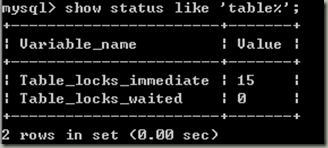 表级锁性能监控: show status like ‘table%’;