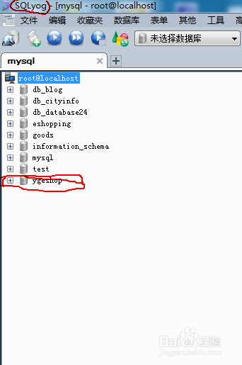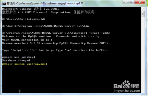 如我输入的命令行:mysql>use ygeshop;